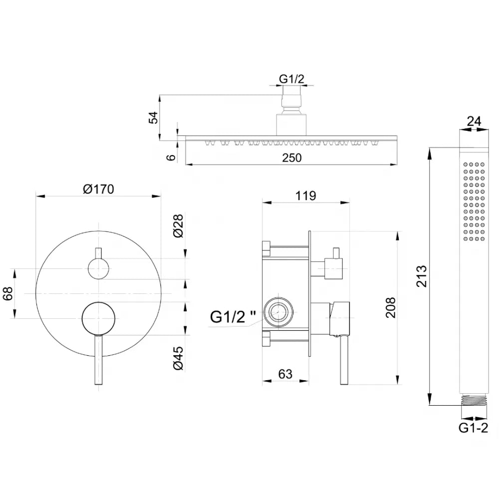 • Τύπος: Σετ μπαταρίας ντους εντοιχισμού με δύο εξόδους νερού