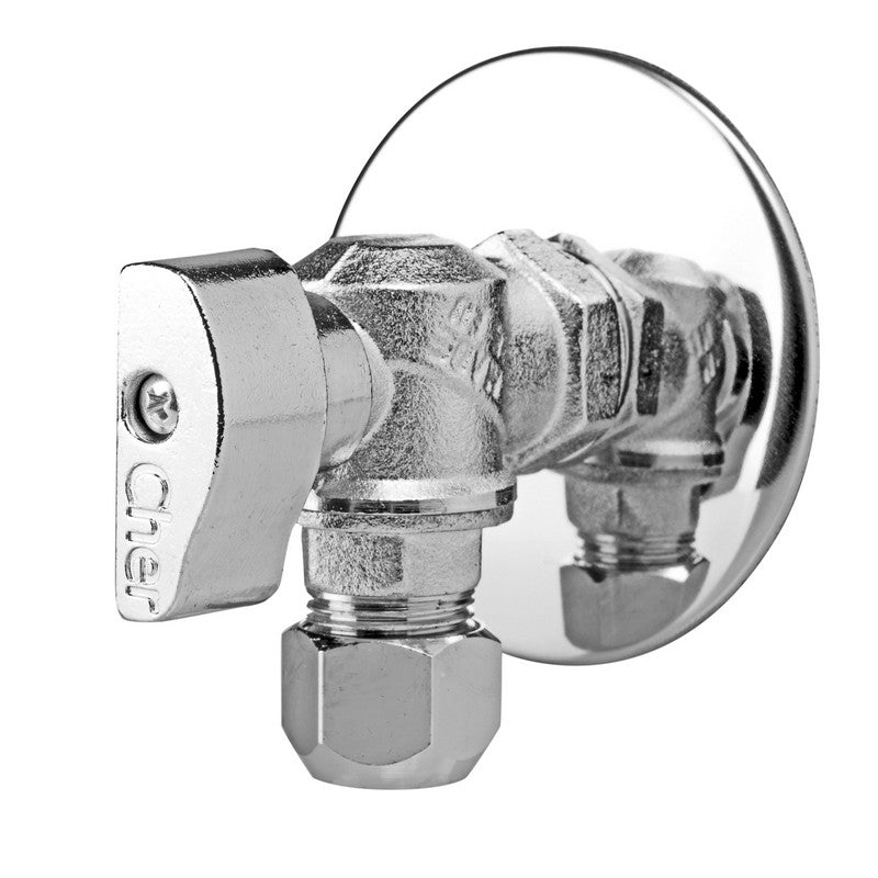 Διακόπτης Γωνιακός 1/2"x3/8" PLUS Antilime Κοντός με Σπείρωμα Χρωμέ/Ροζέτα CHERBROS