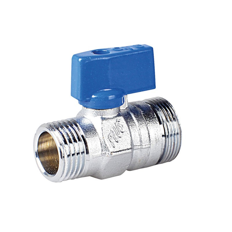 Διακόπτης Σφαιρικός Mini 1/2" – 24x19 Αρσενικό-Αρσενικό Χρωμέ με Μπλε Λαβή CHERBROS