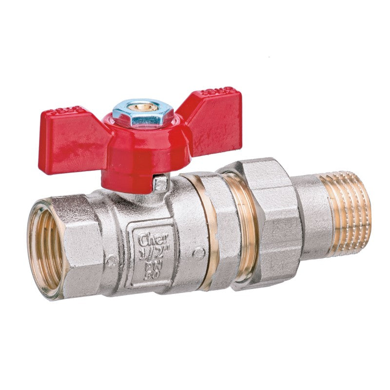 Διακόπτης Σφαιρικός 3/4" με Ρακόρ NORMAL και Λαβή Πεταλούδα CHERBROS
